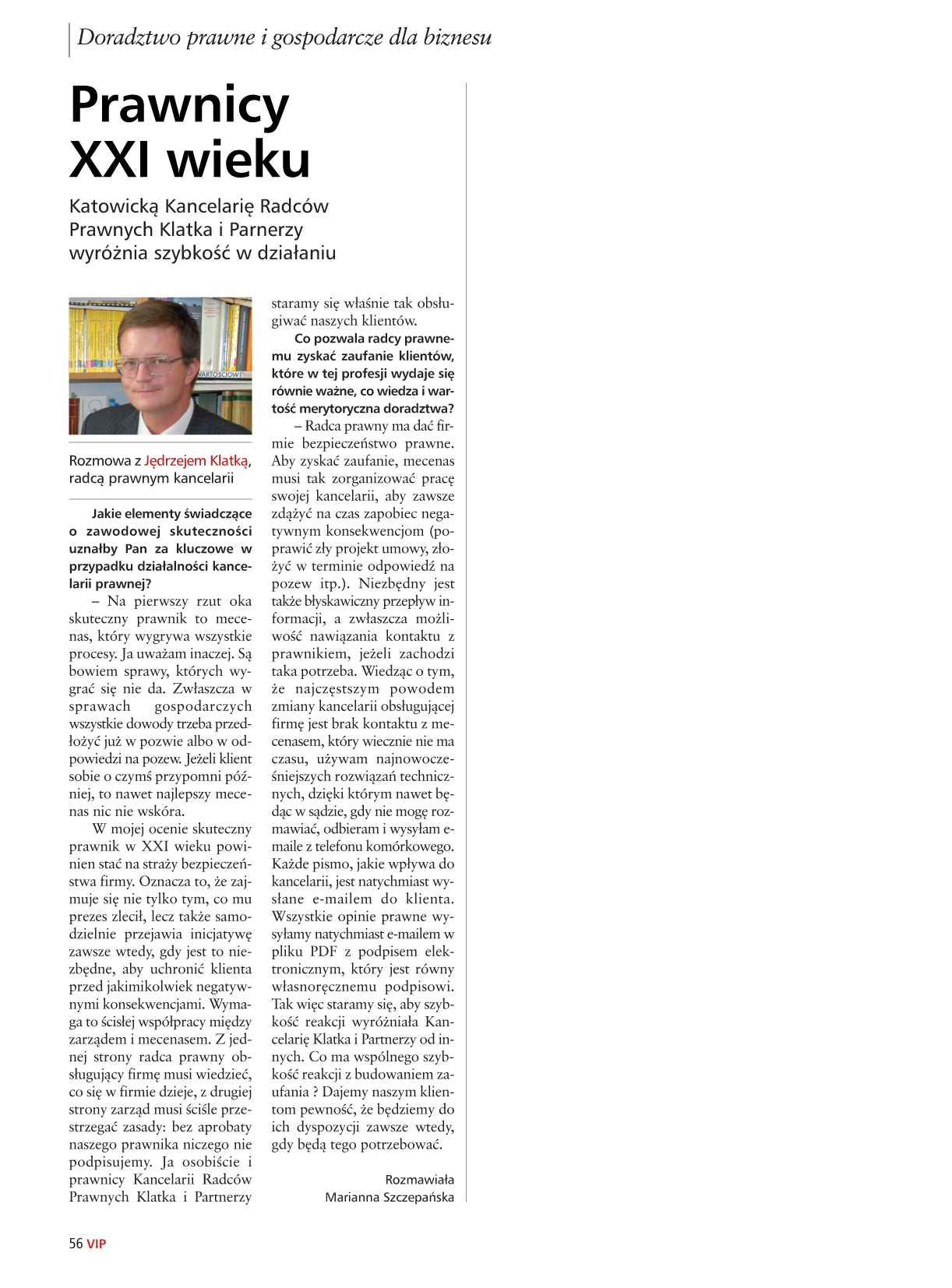Napisali o nas: Prawnicy XXI wieku - VIP